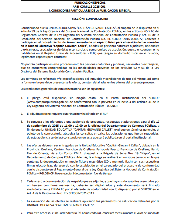 A CONTINUACIÓN SE ADJUNTA UN DOCUMENTO PARA EL PROCEDIMIENTO DE ARRENDIMIENTO DE BAR COMEDOR.PLIEGOS BAR COMIL12.pdf