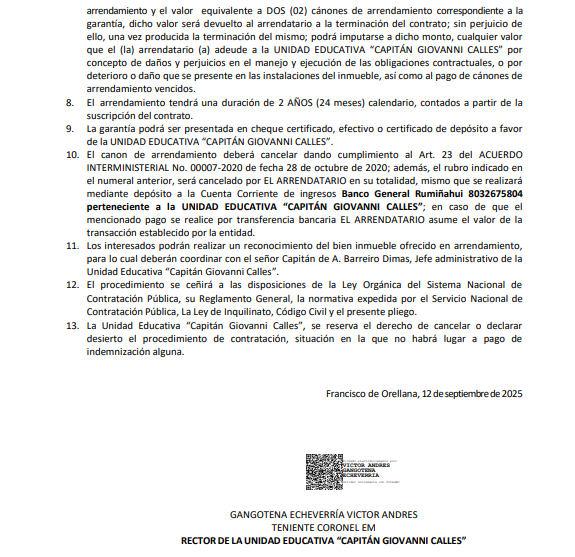 UNIDAD EDUCATIVA DE FUERZAS ARMADASCOLEGIO MILITAR N.° 12 "CAPITÁN GIOVANNI CALLES" SOLO VENCIÉNDOTE VENCERÁS